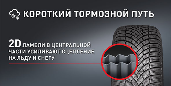 Густая сеть ламелей способствует повышению характеристик на зимней дороге. В центральной части протектора расположены 2-D ламели, обеспечивающие сцепление на льду и снегу, а плечевые блоки дополненные 3-D ламелями, повышают жесткость плечевой зоны.