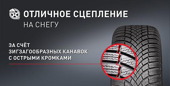 Усовершенствованная форма шашек протектора с множеством острых кромок и зигзагообразных канавок придают шине дополнительные сцепные характеристики на заснеженных дорогах.