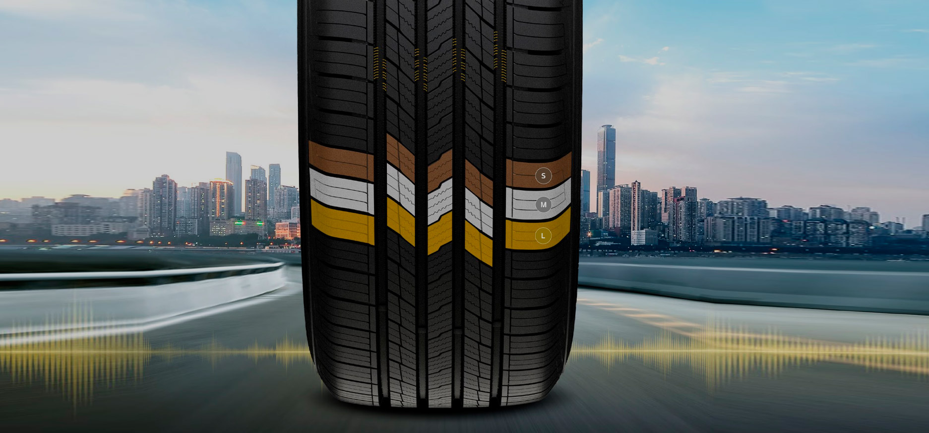 Технология насечки внутри канавок шин значительно уменьшает резонансный шум от дороги благодаря сужению пути воздушного потока без потери эффективности канавки. Благодаря оптимизированному количеству элементов рисунка протектора Dynapro HPX и расстоянию между ними, Вы слышите именно то, что важно во время движения.
