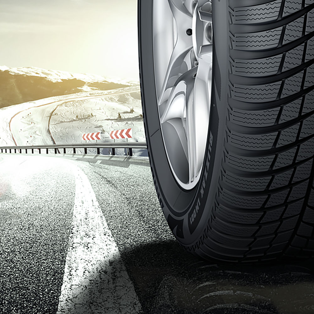 Сцепление на обледенелых дорогах и укатанном снегу обеспечивается за счет ламелизированного протектора, который в области пятна контакта максимально прилегает к поверхности дороги. Это позволяет сохранять контроль и управляемость даже на сложных дорожных участках.