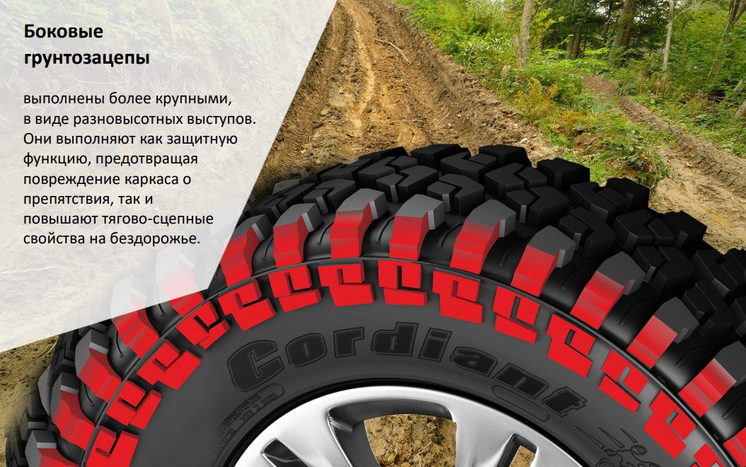 Новое поколение внедорожных шин Cordiant Off-Road 2, вобравшие в себя лучшие решения предшествующей модели, дополненные последними инновациями компании. Модернизированный рисунок протектора, разработанный с помощью компьютерного моделирования, обладает улучшенными эксплуатационными характеристиками, способными изменить представление о комфорте и безопасности внедрожного вождения.