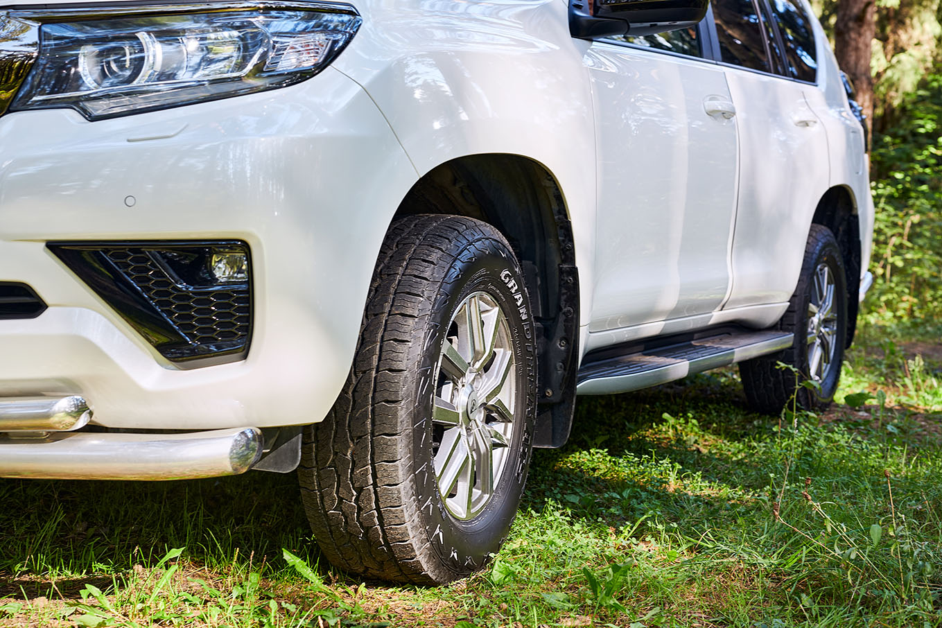 Широкий и плоский профиль данной модели обеспечивает наилучшее распределение давления в зоне контакта, предотвращая неравномерное стирание и увеличивая срок использования шин. В общем, рисунок протектора Grandtrek AT5 нацелен не только на оптимизацию внедорожных показателей, но и улучшение управляемости на шоссейной дороге. В плечевой зоне протектора расположены канавки крестообразной формы, которые повышают эксплуатационные показатели (тяговые и сцепные) на бездорожье и скользкой дороге.