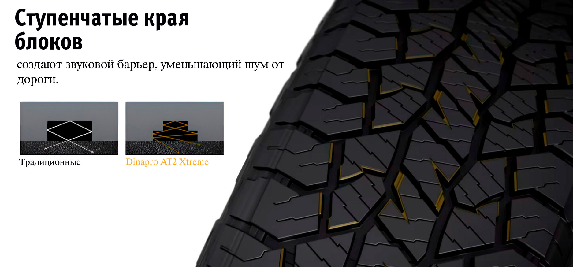 Несмотря на агрессивный протектор, шина Hankook Dynapro AT2 Xtreme RF12 разработана таким образом, чтобы минимизировать дорожный шум на шоссе, обеспечивая более комфортное вождение.