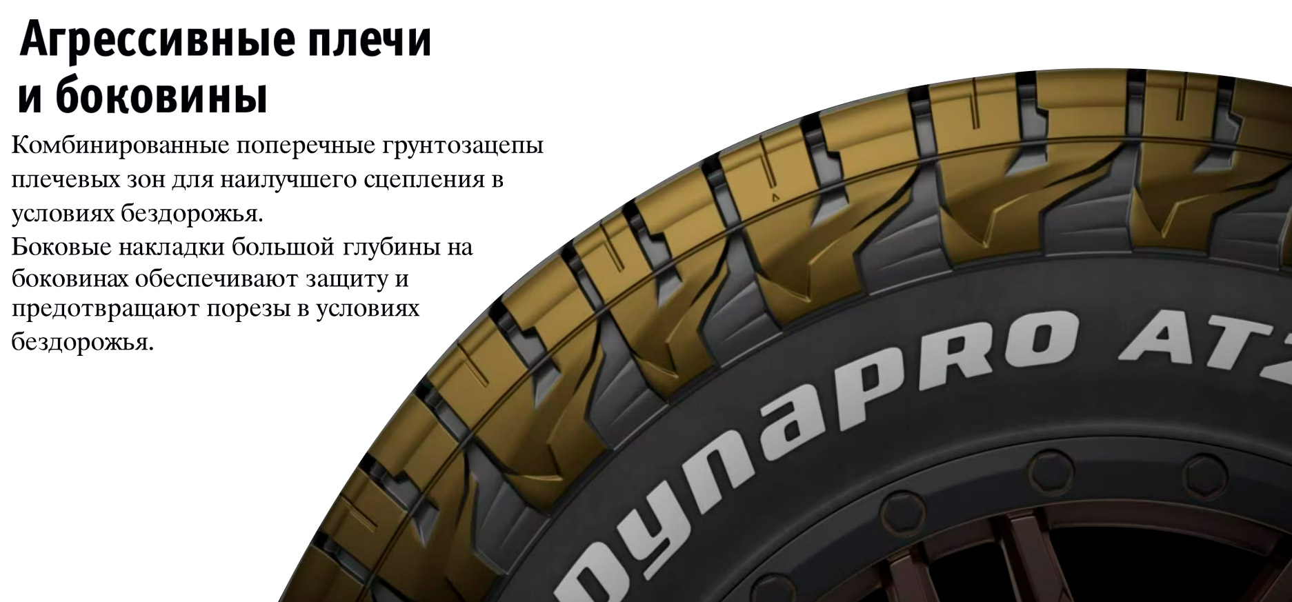 Hankook Dynapro AT2 Xtreme RF12 — это шина повышенной проходимости, предназначенная для использования на джипах, лёгких грузовиках и внедорожниках. Она обеспечивает отличное сцепление с дорогой как на шоссе, так и в условиях бездорожья.