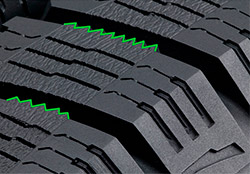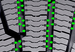 Направленный рисунок протектора с плотным центральным ребром обеспечивает устойчивое движение в соответствии заданному курсу. Мощные плечевые блоки обеспечивают точность реакции на руление и способствуют безопасному выполнению маневров.