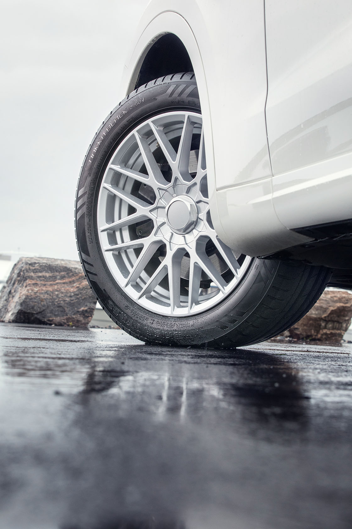 Гидроэвакуационные канавки, разработанные с помощью компьютерного моделирования, перенаправляют воду по узким каналам в широкие и оттуда наружу. Такое строение эффективно справляется с очищением протектора от влаги и защищает от аквапланирования.