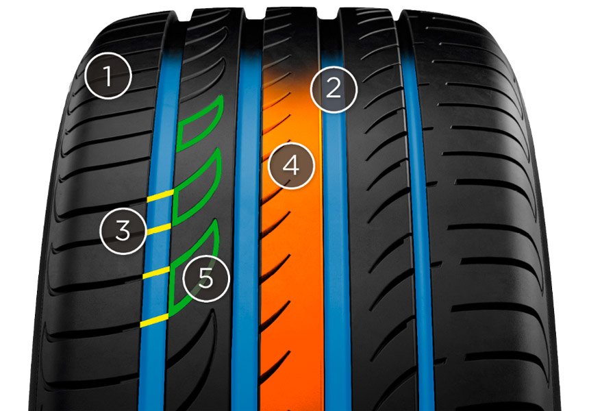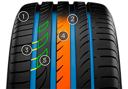 Стабильное сцепление в разных климатических условиях летнего периода легковым шинам Pirelli Powergy обеспечивает асимметричный рисунок протектора. В центральной части протектора расположены три ребра высокой плотности, благодаря чему обеспечивается лучшая управляемость, более результативное торможение на сухом дорожном покрытии, медленный и равномерный износ покрышек, а также низкий уровень шума.