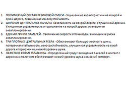 Единая линия ламелей увеличивает скорость оттока воды, уменьшает риска аквапланирования.