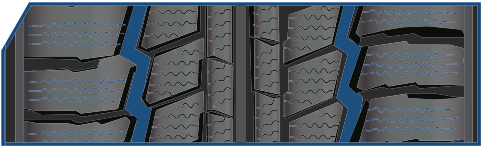 Глубокие симметричные V-образные канавки и зигзагообразный дизайн плечевых канавок для отличного сцепления на снегу и управляемости.