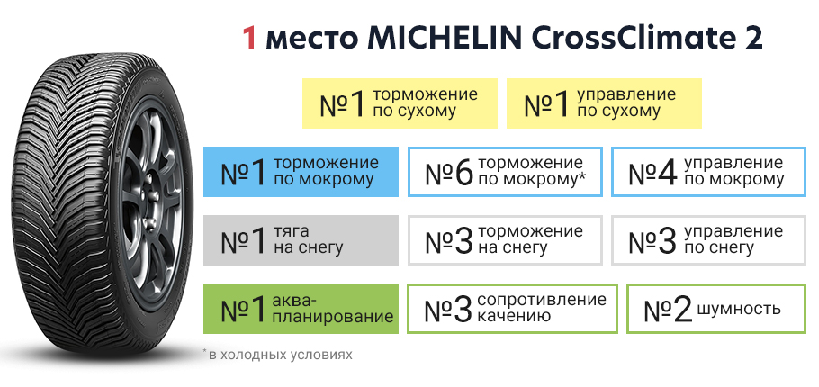 Новая MICHELIN CrossClimate 2 показала себя практически безупречно в тесте, с единственным недостатком – ухудшение параметров на влажном покрытии при более низких температурах. Имела самое «летнее поведение» на сухой дороге, хорошие акустические характеристики и одни из лучших параметров на снегу. Действительно, обновление шины прошло успешно, и по сравнению с предыдущей CrossClimate+ произошли достойные улучшения практически всех характеристик.