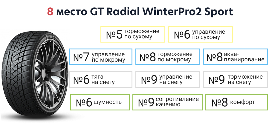 Обеспечивала высокие сцепные свойства на заснеженном и по влажному покрытию, но относительно результатов лидеров теста на холодном треке Goodyear немного не дотягивала. Для премиум сегмента ее цена значительно ниже, чем у конкурентов.
